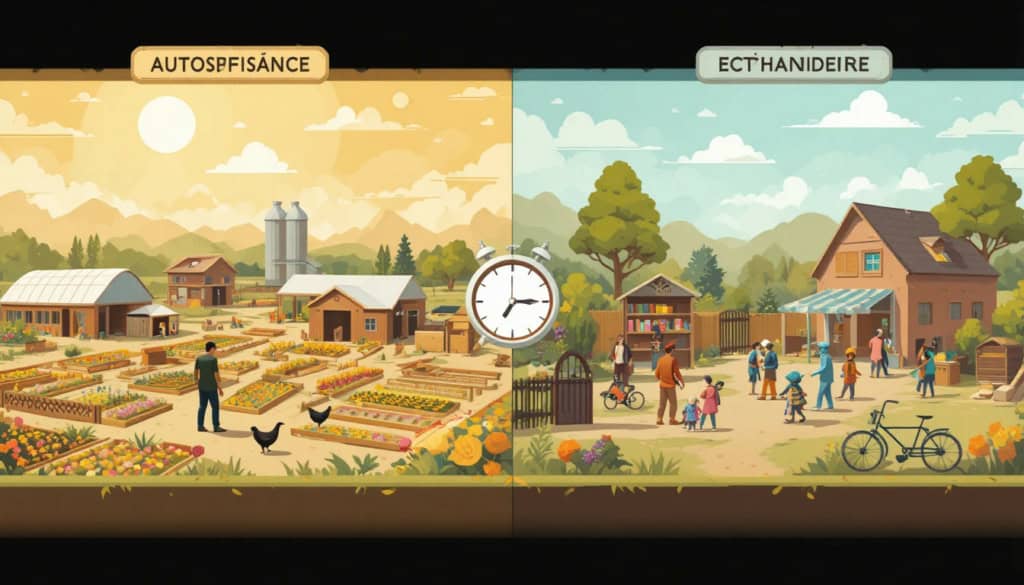 L’autonomie s’enrichit considérablement par les échanges avec d’autres producteurs locaux. Vous ne pouvez pas tout cultiver, mais vous pouvez troquer vos surplus de courgettes contre les œufs du voisin, le miel de l’apiculteur local, ou le fromage d’une petite ferme environnante.